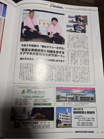 昨年、12月6日に取材を受けました山口県東部の経済情報誌、月間ワイ・ジャーナルに「福祉タクシーきずな」の記事が掲載されました。